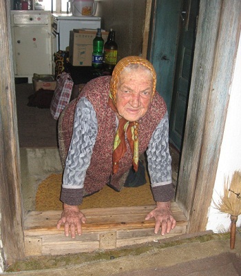 „Од руку сам ноге направила, од своје пете године када је парализа учинила своје, погрбила сам се, осуђена сам да до краја живота пужем као беба. Не могу да исправим ноге у коленима, па ходам четвороношке, скоро на рукама. Колена су ми подерана као стара храстова кора, а неки добри људи су ми, још кад сам била девојка, да не дерем и крвавим дланове, направили дрвене нануле које стављам на руке и тако ходам“, јада нам се старица, јецајући због несносних болова у леђима.