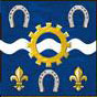 Хералдички стег је истоветан садржају штита пренесеном на квадратну основу: Плаво, таласаста хералдичка пруга између три потковице сребрно, у подножју два крина а у средини стега зупчаник златно.