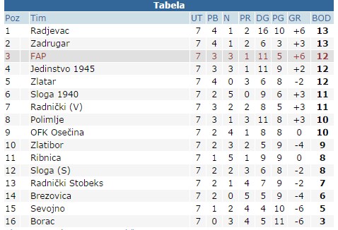 Dobroj fudbalskoj predstavi na Zlatiboru nedostajali su samo golovi. Po oceni većine posmatrača pribojski zonaš je bio nešto bolji tim, ali je na kraju malo nedostajalo da domaćin dođe do pobede. U samoj završnici susreta, u 85. minutu posle faula nad Lukovićem dosuđen je jedanaesterac za domaćina. Udarac Mudrinića sjajnom paradom je zaustavio golaman FAP-a Filip Pijevac, koji je u nekoliko navrata i ranije tokom susreta imao zapažene intervencije. Nakon svega prikazanog obe ekipe mogu biti zadovoljne bodom. FK FAP posle 7. kola zauzima 3. mesto na tabeli sa 12 osvojenih bodova i u narednom kolu dočekuje drugoplasiranu ekipu Zadrugara iz Lajkovca.